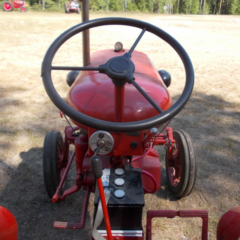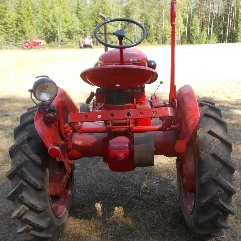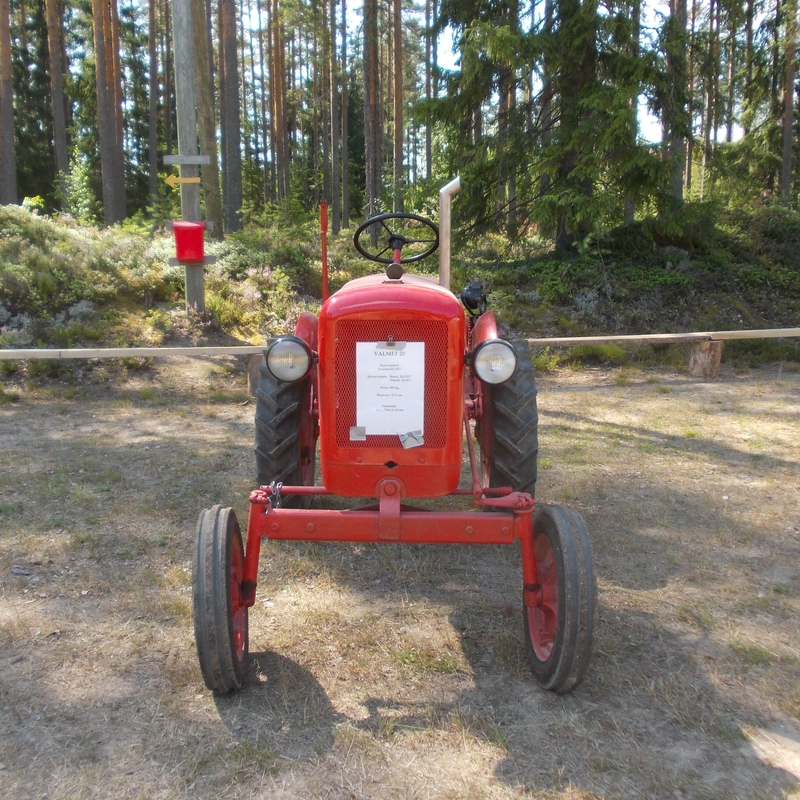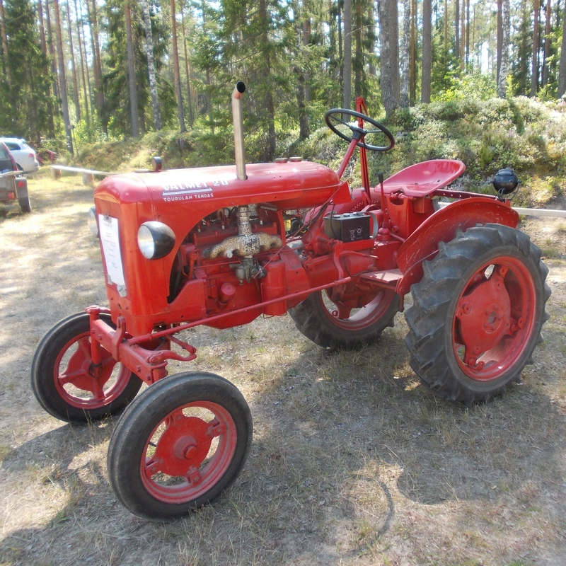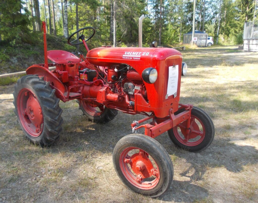 Kuvassa Valmet 20. Vuosimalli on 1957, tehoja 26 hv ja käyttövoima on bensiini sekä petrooli. Omistajina Jorma Suurhasko ja Tatu Virtanen.
